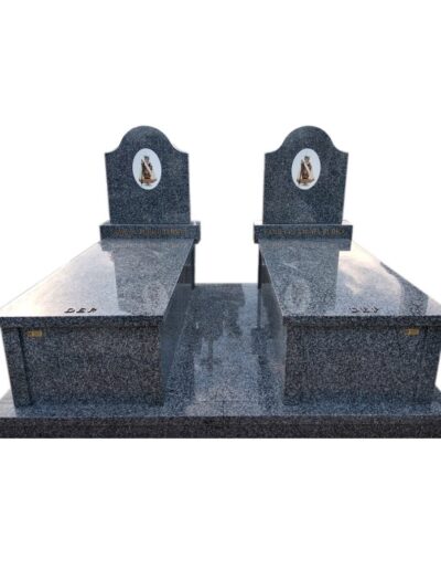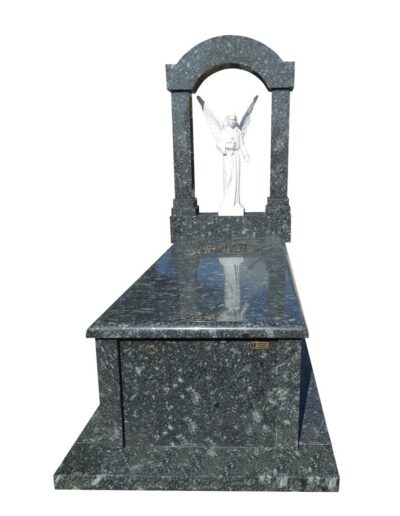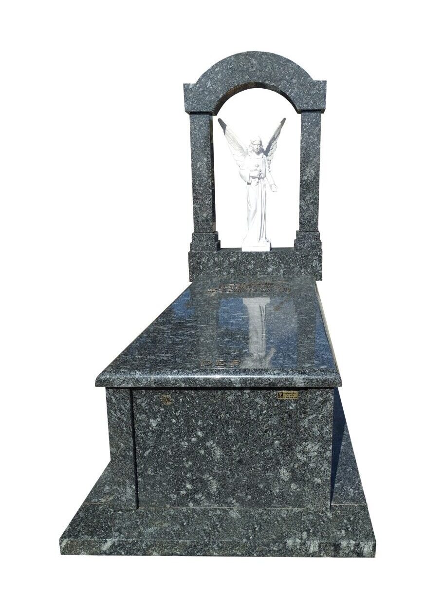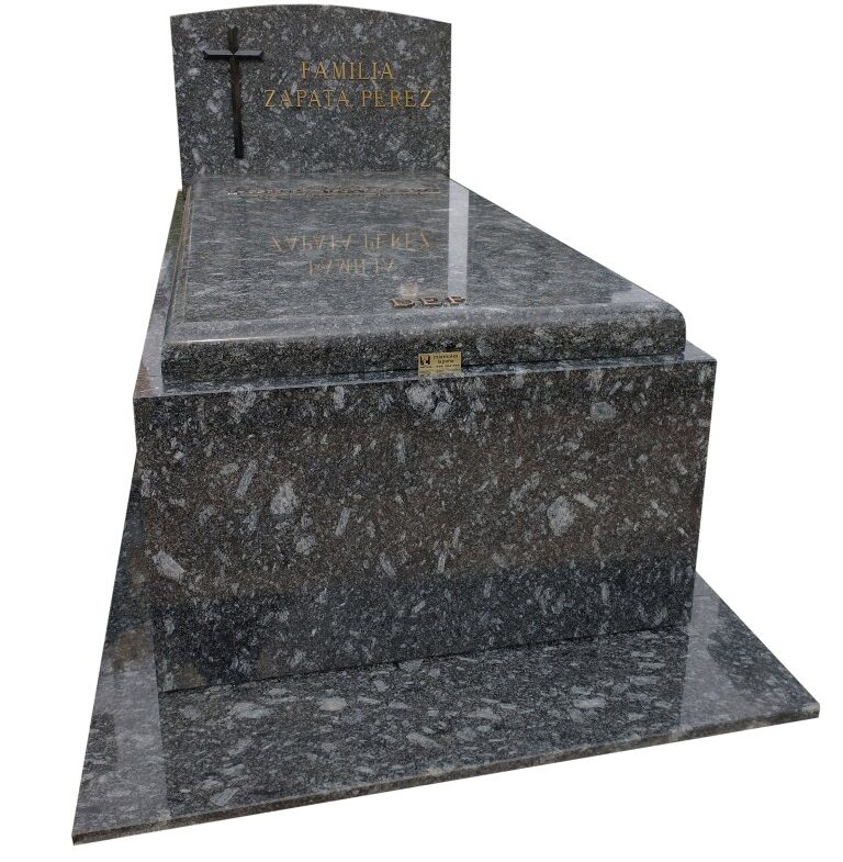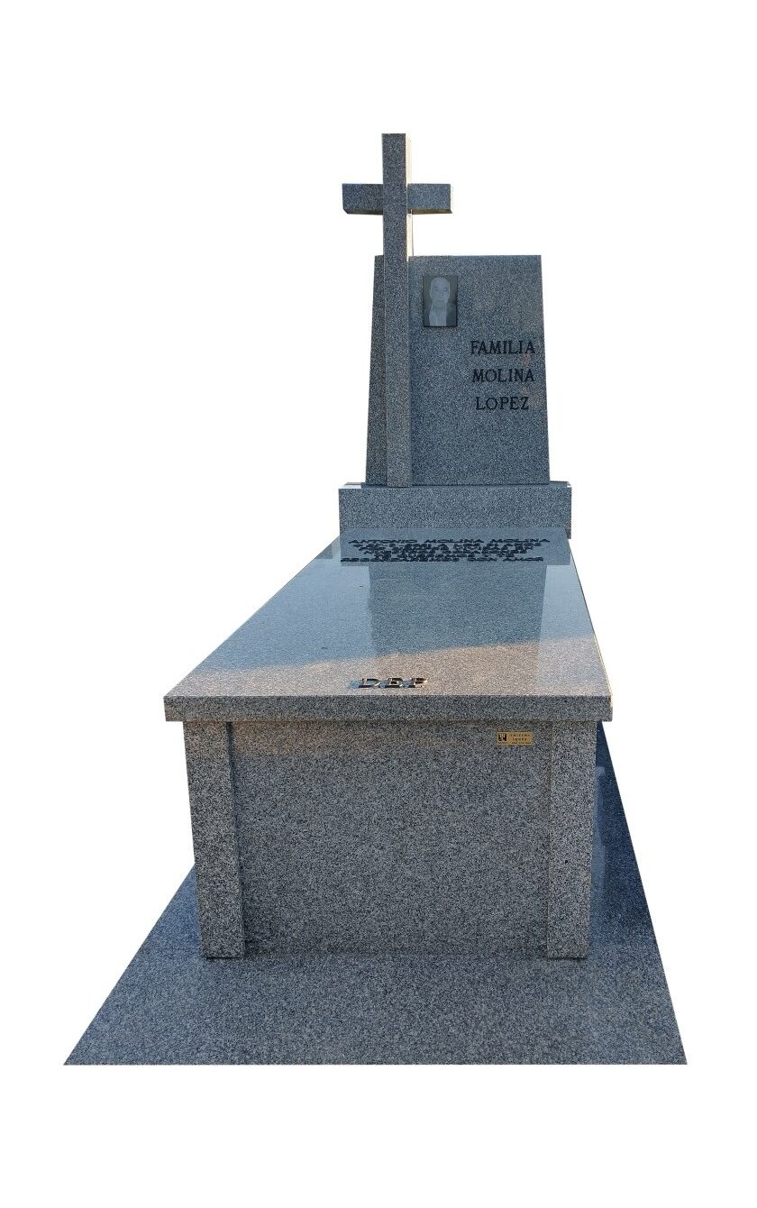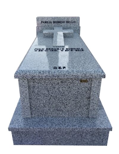 Tapa de 8 cm con canto redondeado. Escultura en la piedra y grabado a láser. Escalón recubierto.