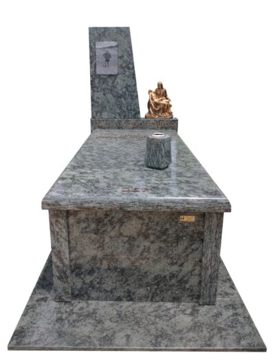 Tapa de 5 cm con canto recto. Laterales en dos alturas. Figura de la Piedad.