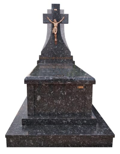 Tapa inclinada de 15-12 cm con cantos redondeados. Laterales de 10 cm. Cristo macizo de bronce.